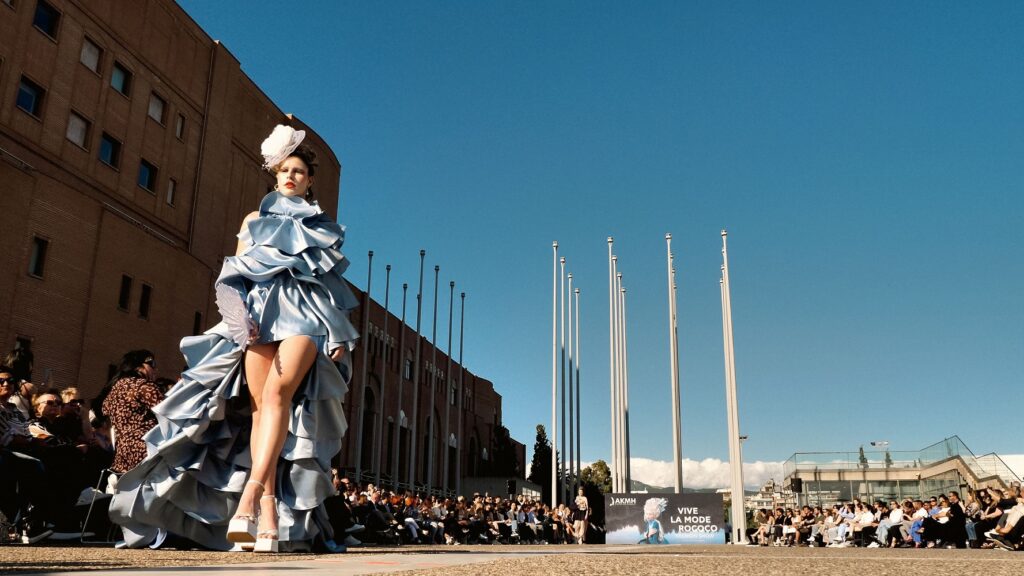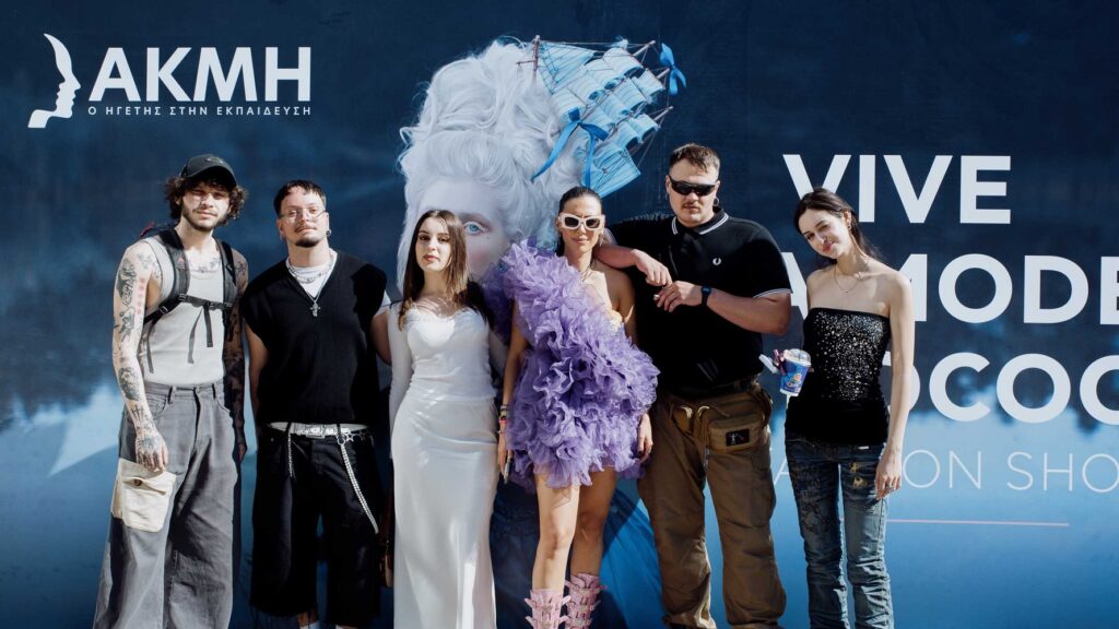 Στη Θεσσαλονίκη, το Μέγαρο Μουσικής μεταμορφώθηκε για πρώτη φορά σε πασαρέλα μόδας, με την ΑΚΜΗ να είναι ο πρώτος εκπαιδευτικός οργανισμός που απέσπασε την έγκριση για διοργάνωση fashion show στον ιστορικό αυτό χώρο. Το θέμα “VIVE LA MODE ROCOCO” ταξίδεψε το κοινό στη Γαλλία του 18ου αιώνα, μέσα από στενά μπούστα, βολάν, παστέλ makeup και εμπνευσμένα μουσικά mixes που συνέδεσαν την κλασική αισθητική με το φουτουριστικό στοιχείο. Το runway παρουσίασε με μοναδικό στυλ η TikToker της Βόρειας Ελλάδας Θεοφίλη Παναγιωτίδου, φορώντας custom outfit από την ANEMH Clothing.