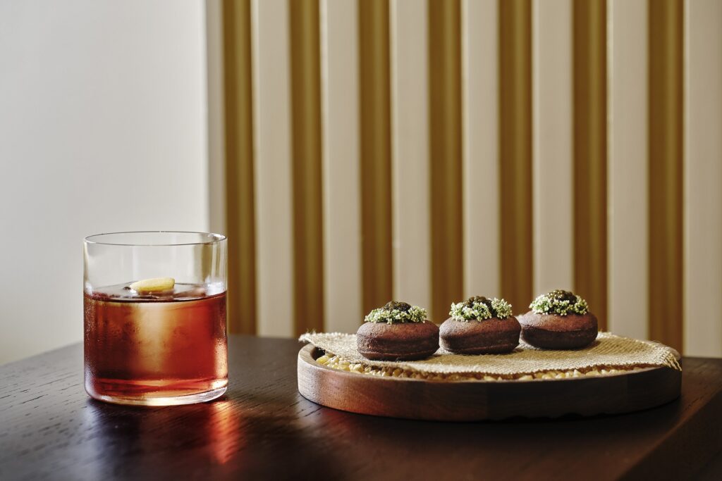 Μια συλλογή από τολμηρά και ευφάνταστα bites αποτελούν το τέλειο pairing για ποτό. Lobster mac & cheese, beef tartare éclair, bao με γαρίδα tempura, αλλά και μια εντυπωσιακή παρουσίαση με στρείδια πάνω σε πάγο, συνοδεύουν με στυλ κάθε ποτήρι και δημιουργούν μια αίσθηση κοσμοπολίτικης νυχτερινής περιπλάνησης. Όλα συμπληρώνονται με λεπτομέρειες που αφήνουν διακριτικό αλλά ανεξίτηλο αποτύπωμα. Πορσελάνες Ecaille crème από τη Γαλλία και οι χειροποίητες στολές προσωπικού που σχεδίασε ο ελληνικός οίκος Zeus + Dione, αναδεικνύουν την αισθητική φιλοσοφία του χώρου και την προσοχή στην λεπτομέρεια σε κάθε του σημείο.