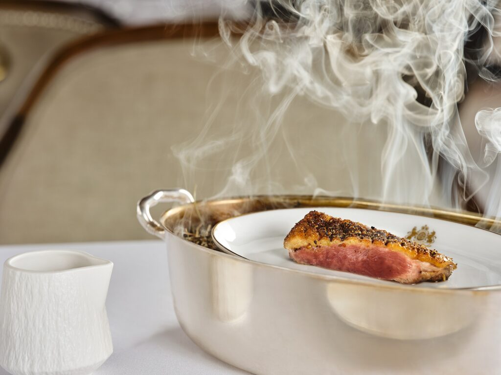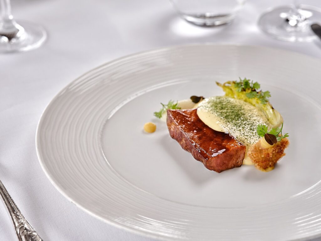 Ιδιαίτερη προσθήκη στο μενού αποτελεί το στήθος πάπιας με ραβιολάκι γεμιστό με μπούτι κονφί, ανθό μπρόκολου και σάλτσα από φρούτα του δάσους, ενώ η κοπή κρέατος ημέρας παραμένει σταθερή επιλογή, με σεβασμό στην ποιότητα της πρώτης ύλης.