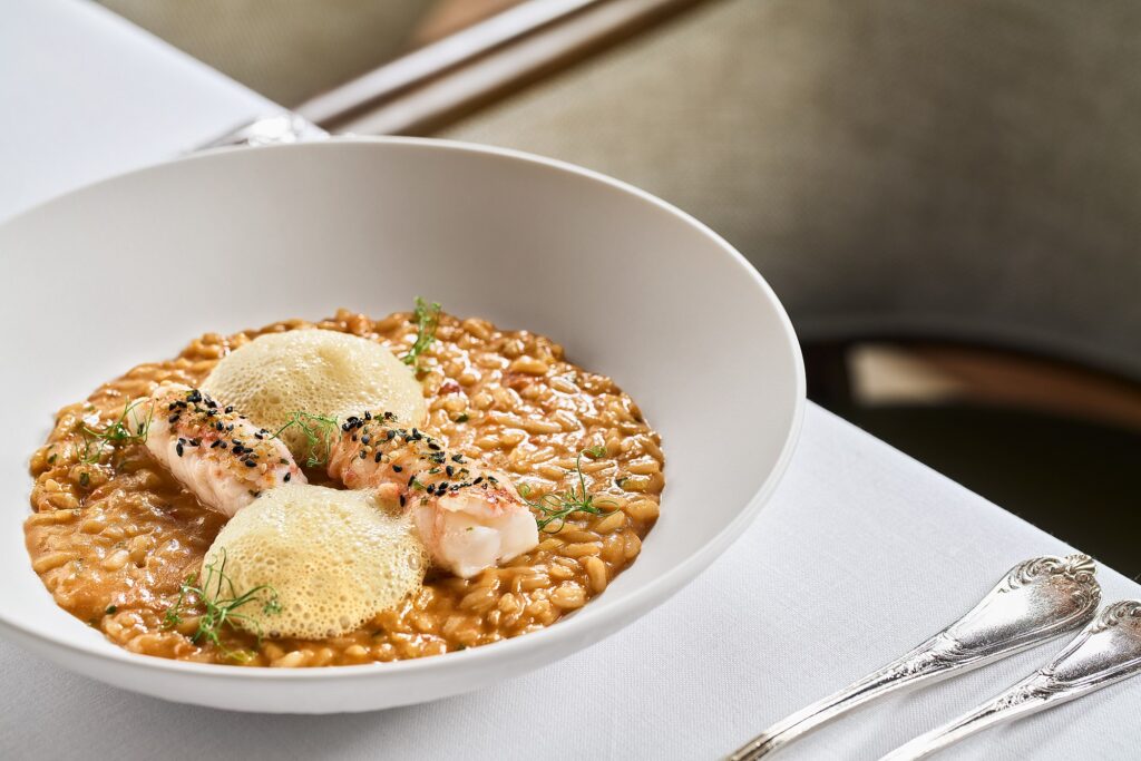Στα ζυμαρικά, το ριζότο Acquerello με καραβίδες, furikake, εσπρέσο και κάρυ, καθώς και το φύλλο λαζάνι με κόκορα και κρέμα από αρσενικό Νάξου Π.Ο.Π., αποτελούν πιάτα με βάθος και χαρακτήρα.